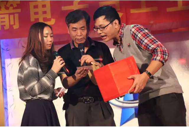 现场寿星被逗得合不拢嘴~